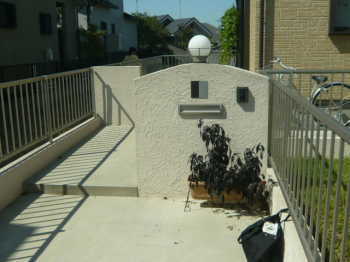 車庫の前はかなり交通量が激しい道路のH邸。お子様がそろそろ活発に動き始めるようになり、うっかり外に出て行ってしまうのをお施主様、祖父母様共とても心配されていました。そこでオープン外構だった門周りをクローズスタイルに変更する事に。具体的には門袖の脇に門扉を設置。うっかり外に出て行ってしまう事を心配する事がなくなって、とても安心したとの事でした。オープン外構は解放感があっていいですが、小さいお子様がいるご家庭にとっては注意する点も多いです。お子様が活発に動き始める時期になったら是非一度、危険な個所がないか、外構やエクステリアを見直してみて下さい!!