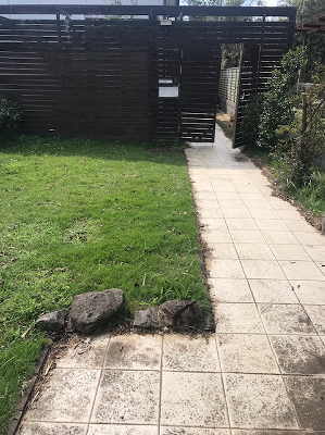 千葉を襲った台風で木製の門周りが破損したI邸。LIXILのリフォームコンタクトより既存のフレームのデザインを保持しつつ、ローメンテナンスでモダンな雰囲気の外構をとのご依頼でした。