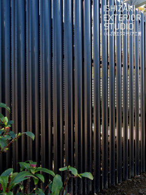 クローズ外構かつ縦ラインでモダンに、ローメンテナンス、目隠しも兼ね備えた施工後