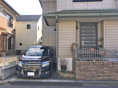 門扉の位置を変え、庭の一部を撤去して自転車置場と車庫へリフォーム