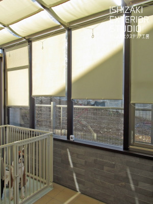 夏の日射し用の日除けと目隠しのロールスクリーン。