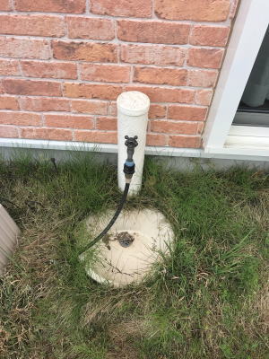 芝高が短くなってスッキリとした人工芝施工後の立水栓